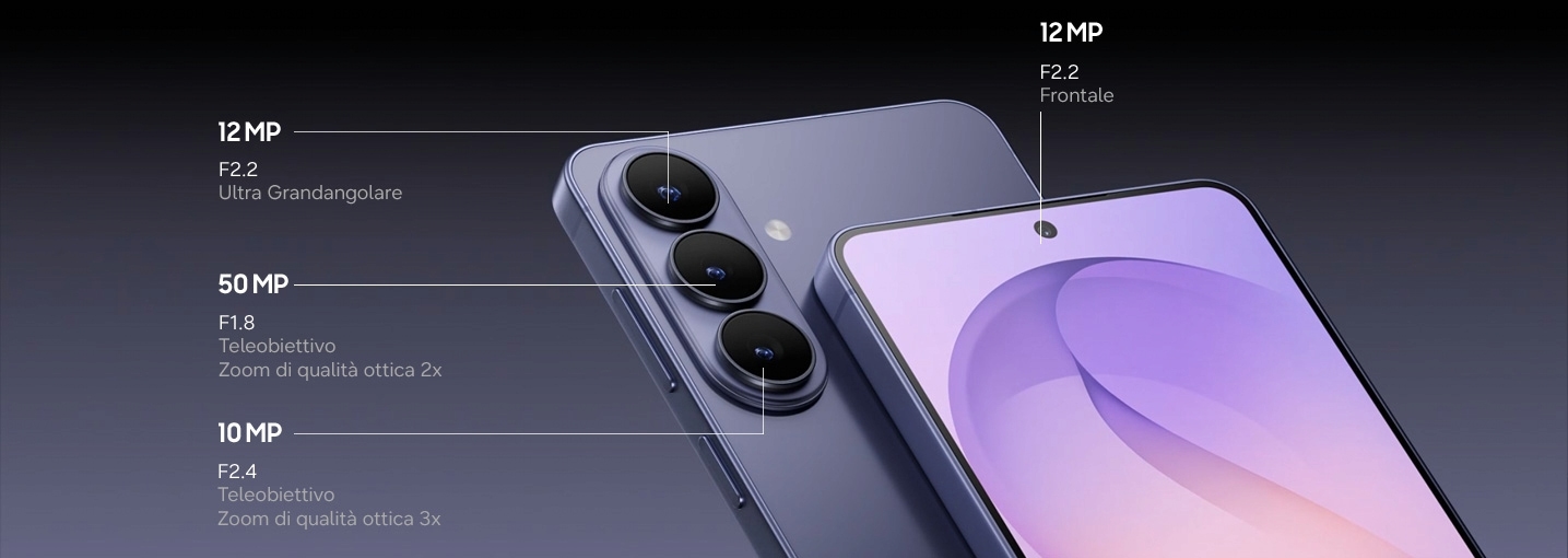 La fotocamera anteriore di Galaxy S26 e S26+ è ora dotata di un processore di segnale immagine (ISP) AI che consente di scattare selfie più naturali con luci e ombre esattamente dove dovrebbero essere, che riproducono fedelmente il tono naturale della pelle e di altri dettagli come capelli e sopracciglia, proprio come li vedono i tuoi occhi.10