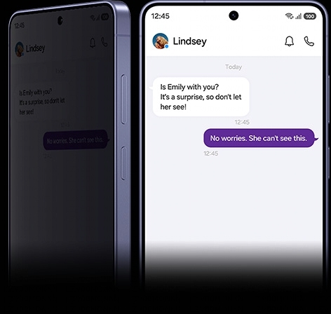 Scopri lo schermo per la privacy integrato, solo su Galaxy S26 Ultra. Basta attivarlo manualmente e Privacy Display proteggerà le tue informazioni private nascondendo l’intero schermo alla vista di altre persone. Oppure, è possibile scegliere cosa nascondere, come determinate app, notifiche e password.1